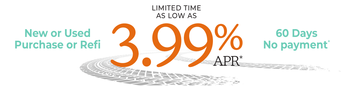 *Annual Percentage Rate (APR) may change without notice. Rates and terms may vary depending on each individual’s credit history and underwriting factors. Existing Avenir Financial auto loans do not qualify for refinance offers. Interest accrues during 60-day period. 60-day deferral is not available on refinancing existing Avenir Financial auto loans. Subject to lending approval and membership eligibility.